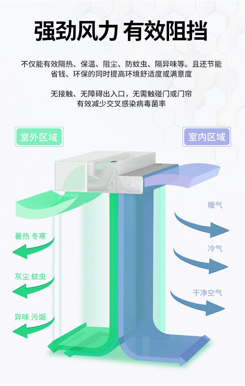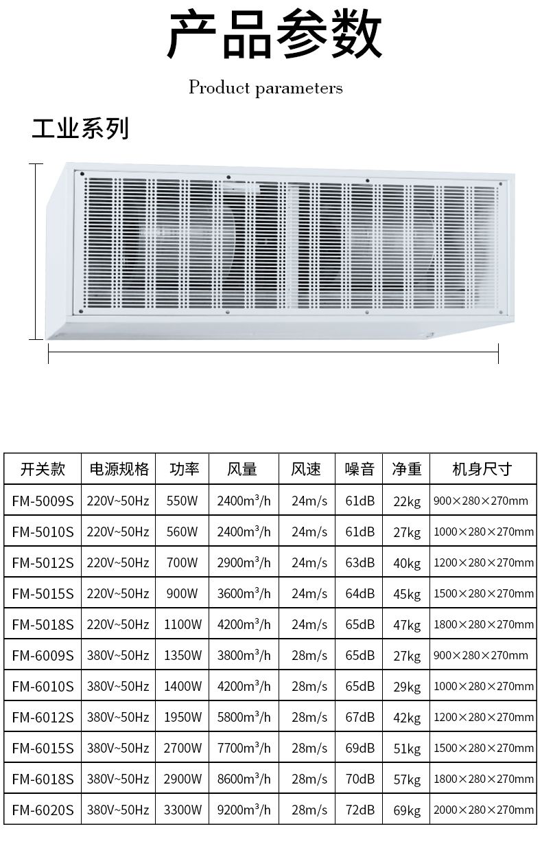 1、工業(yè)風(fēng)幕機(jī)采用金屬電鍍烤漆噴涂外殼,防銹美觀,堅固耐用不易變形,長方形結(jié)構(gòu)鉚接固定更牢固穩(wěn)定。